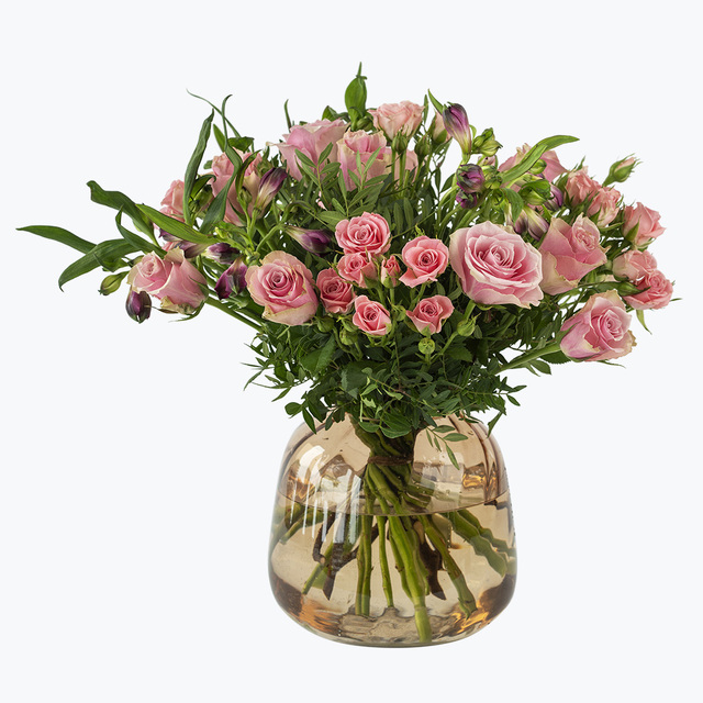 En tradisjonell bukett som består årstidens sterke fargetoner. En klassisk blomsterhilsen å sende på døren til den du vil gratulere. Vis mer